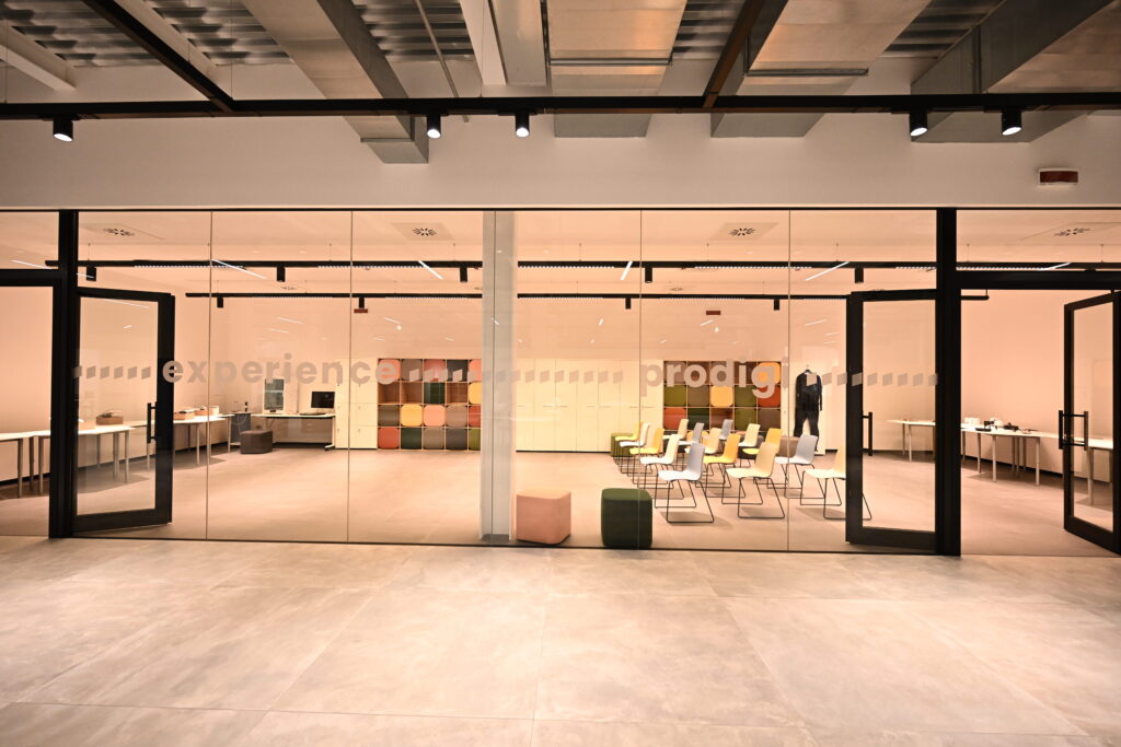 La nuova struttura non è solo un ampliamento fisico, ma una ulteriore crescita qualitativa dell’offerta didattica, con due nuovi laboratori d’avanguardia: l’Aula Cupertino, un laboratorio interamente allestito per lo studio e la pratica con tecnologie Apple e certificato per la formazione specifica. E la Experience Prodigi, uno spazio dedicato alla sperimentazione spinta: qui gli studenti potranno utilizzare visori di realtà virtuale, stampanti 3D e innovativi guanti aptici. Questi dispositivi permettono di simulare la sensazione del tatto, consentendo di percepire virtualmente la consistenza di materiali e tessuti come se fossero reali.
